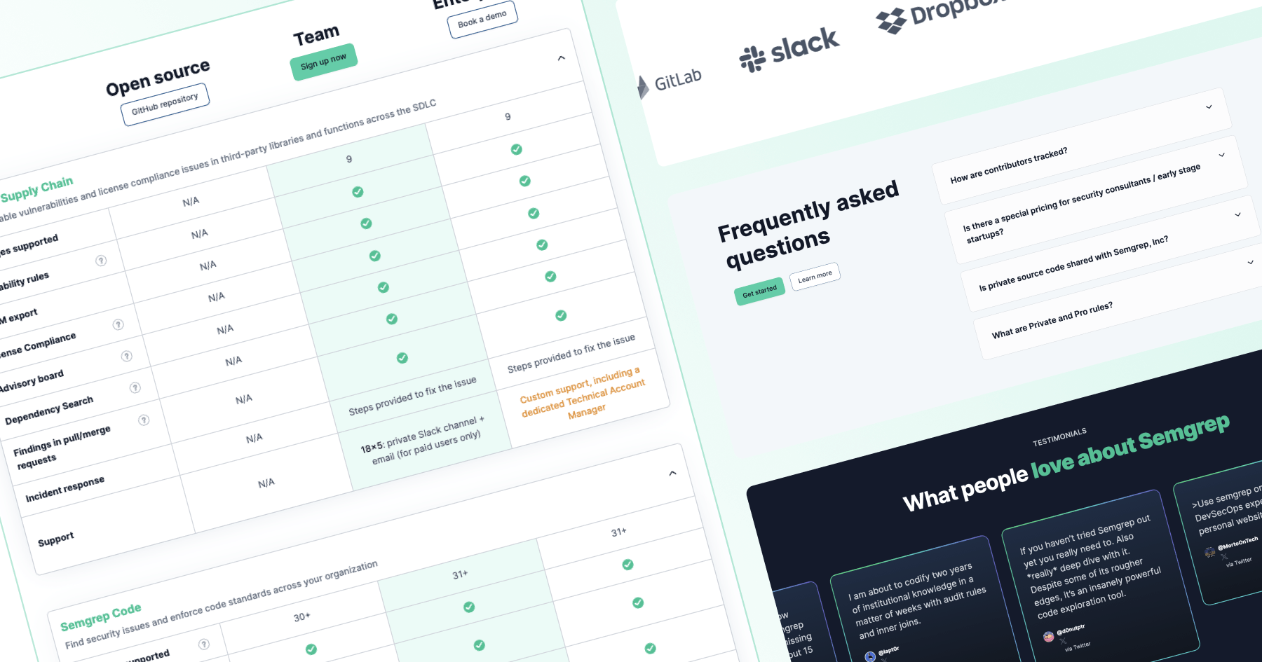 Expansion of Semgrep’s products required significant changes to the pricing page design. The new pricing model was split into 3 tiers.