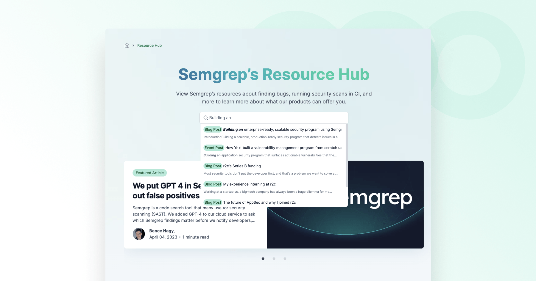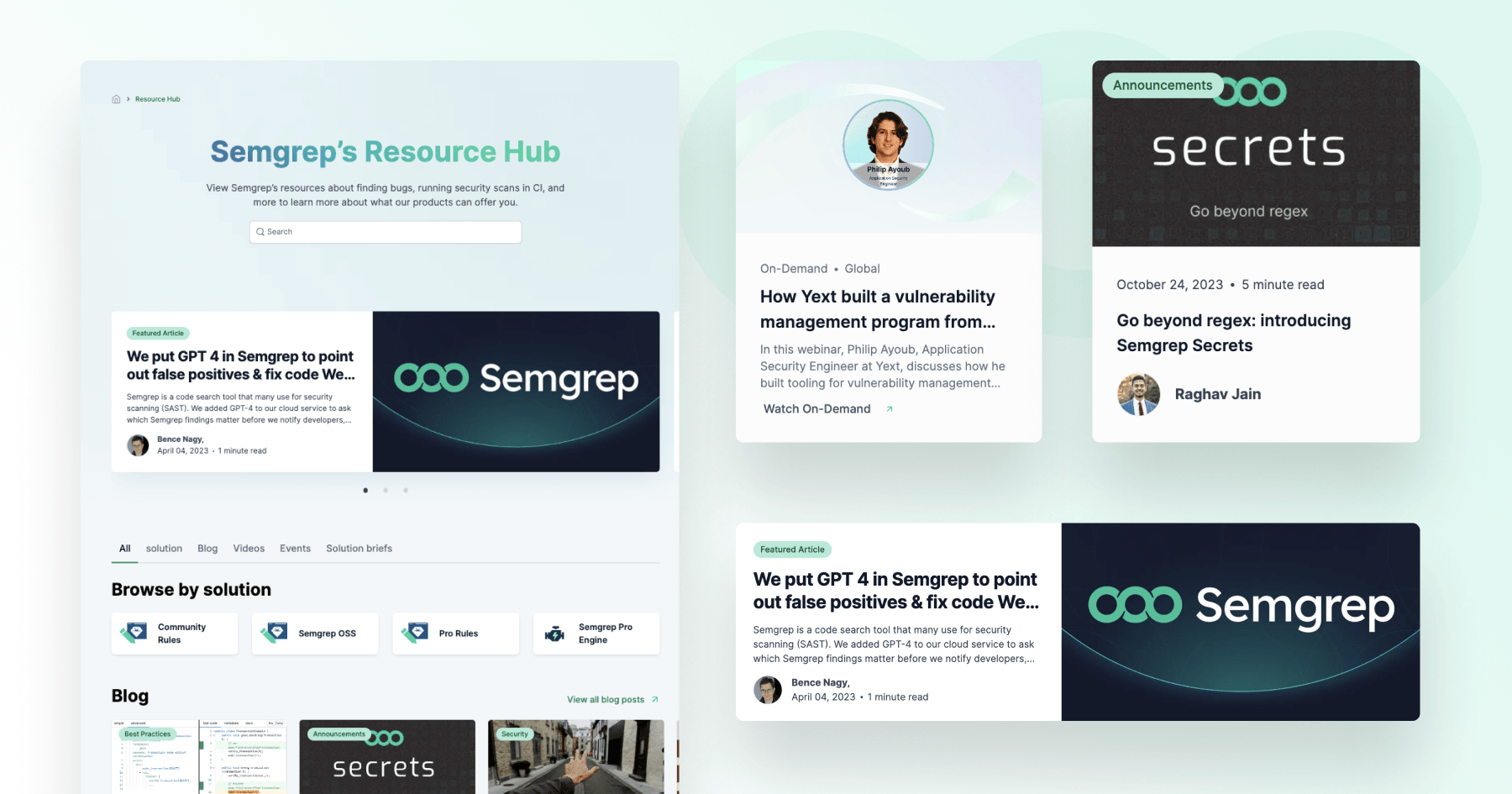 As Semgrep continues investing in content, the resource hub serves as a scalable foundation for adding new experiences that seamlessly integrate with the rest of the website.
