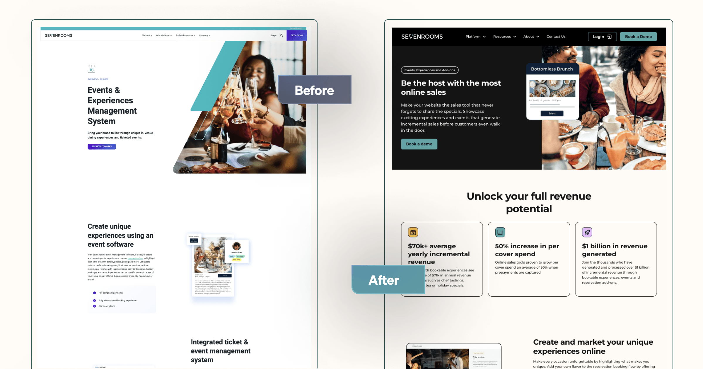 As alluded to previously, SevenRooms was undergoing a significant rebrand. The website lacked the strong, consistent, and unmistakable identity that the executive team envisioned for the company's future.
