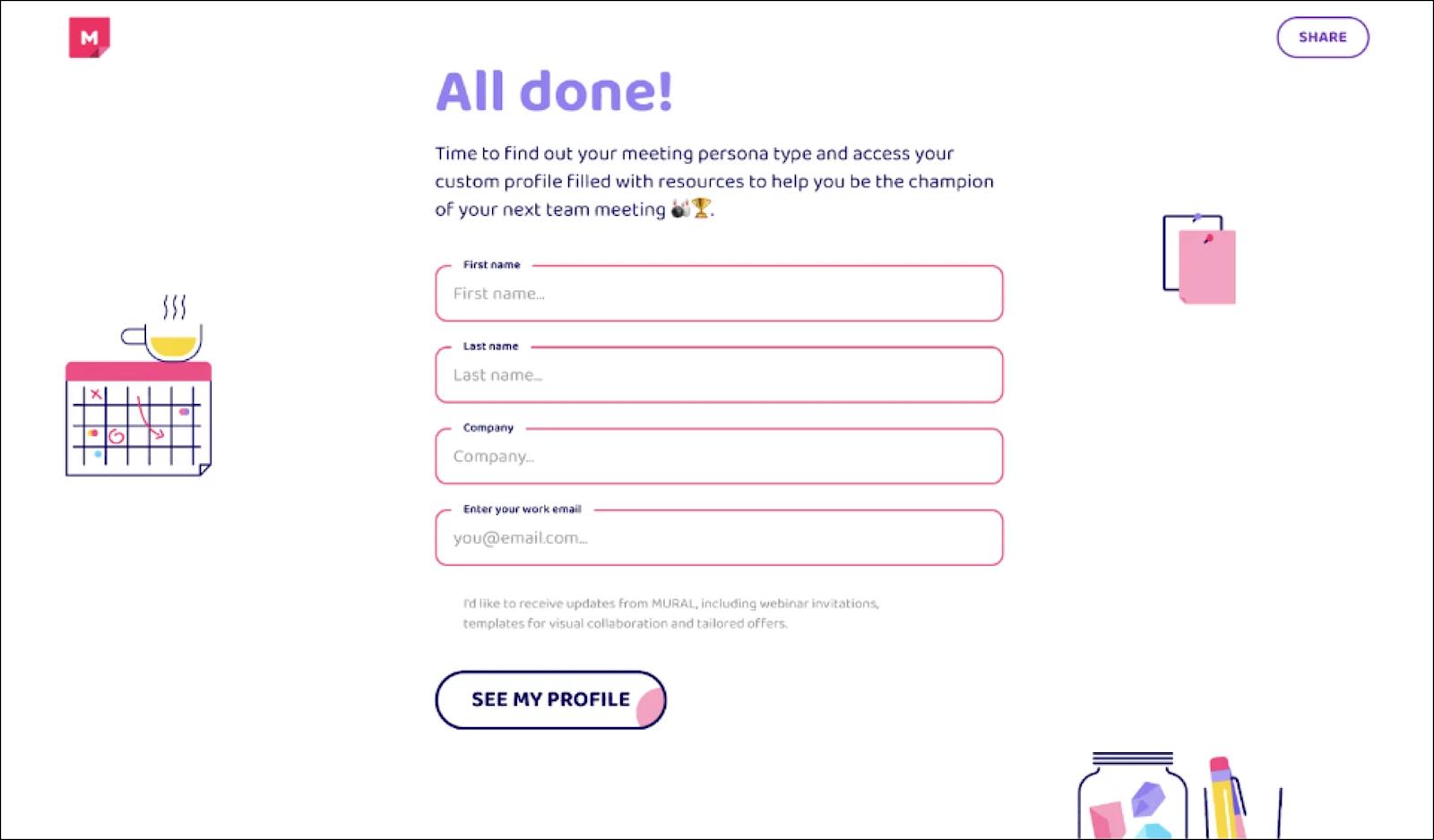 Are you looking to uncover which “meeting” type you are during team meetings? Mural - a visual collaboration tool for all teams - launched a microsite to help users determine which “meeting persona” they are.