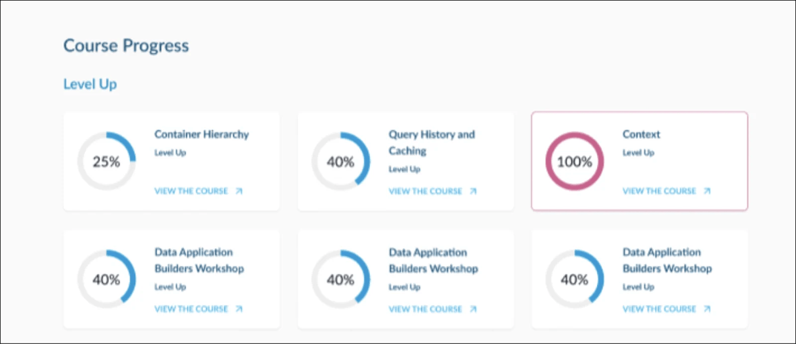 Everyone can benefit from a little motivation on their learning journey, and Snowflake University makes sure each user is encouraged to make it across the finish line! When users view their transcripts, they can track their progress with progress bars, which create an interactive aspect for the website, along with providing tangible feedback to learners.