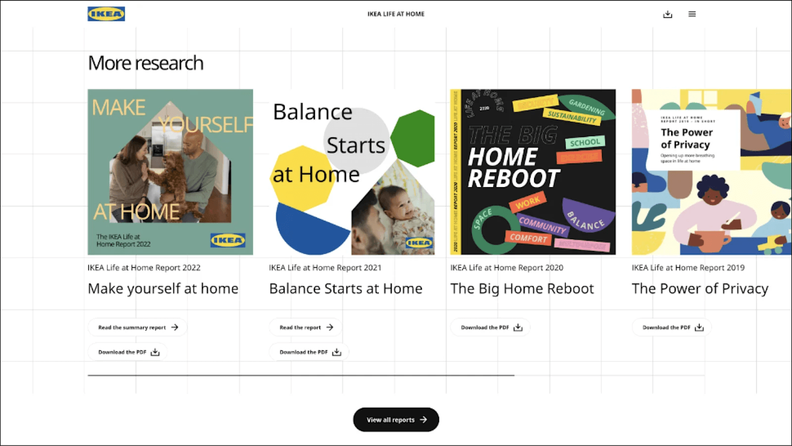 What’s super cool about IKEA’s microsite is that it’s quite literally the report. Time and time again, users must submit information to receive a report of this stature in return. In this case, IKEA provides the report as ungated content.