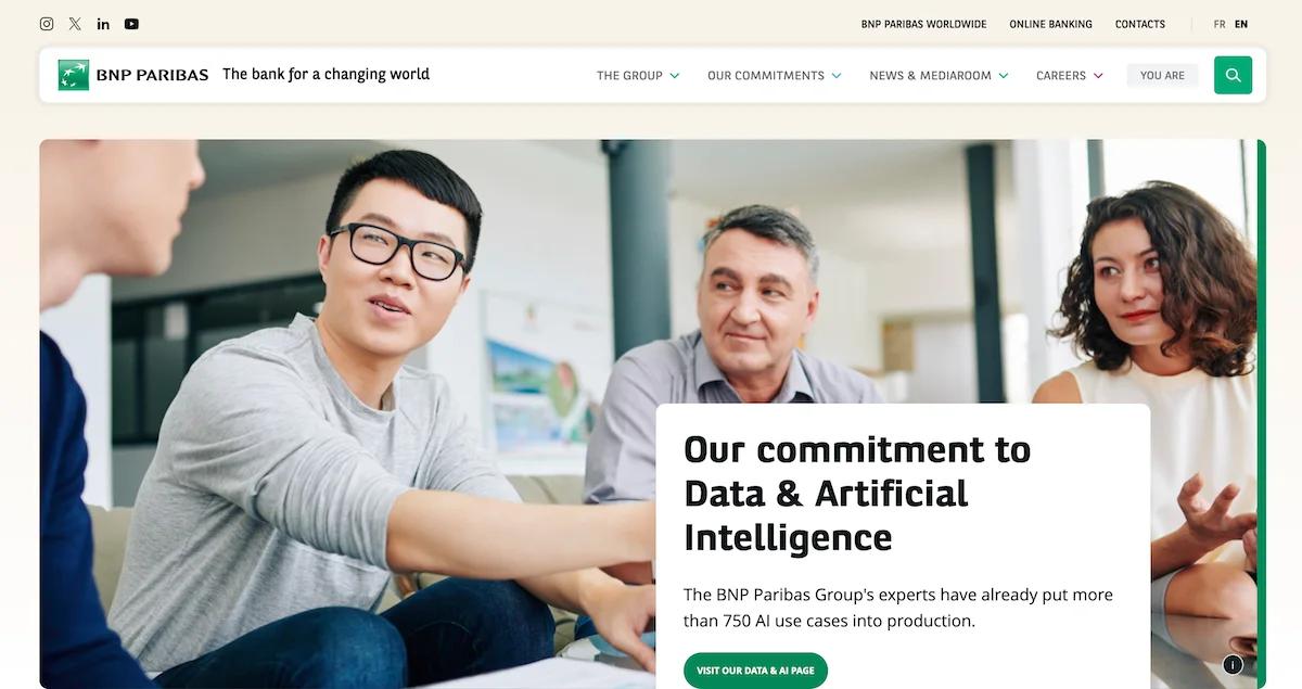 Key sections are well-defined, featuring scrolling banners, icons, and customer stories that highlight the bank’s digital-first approach.
