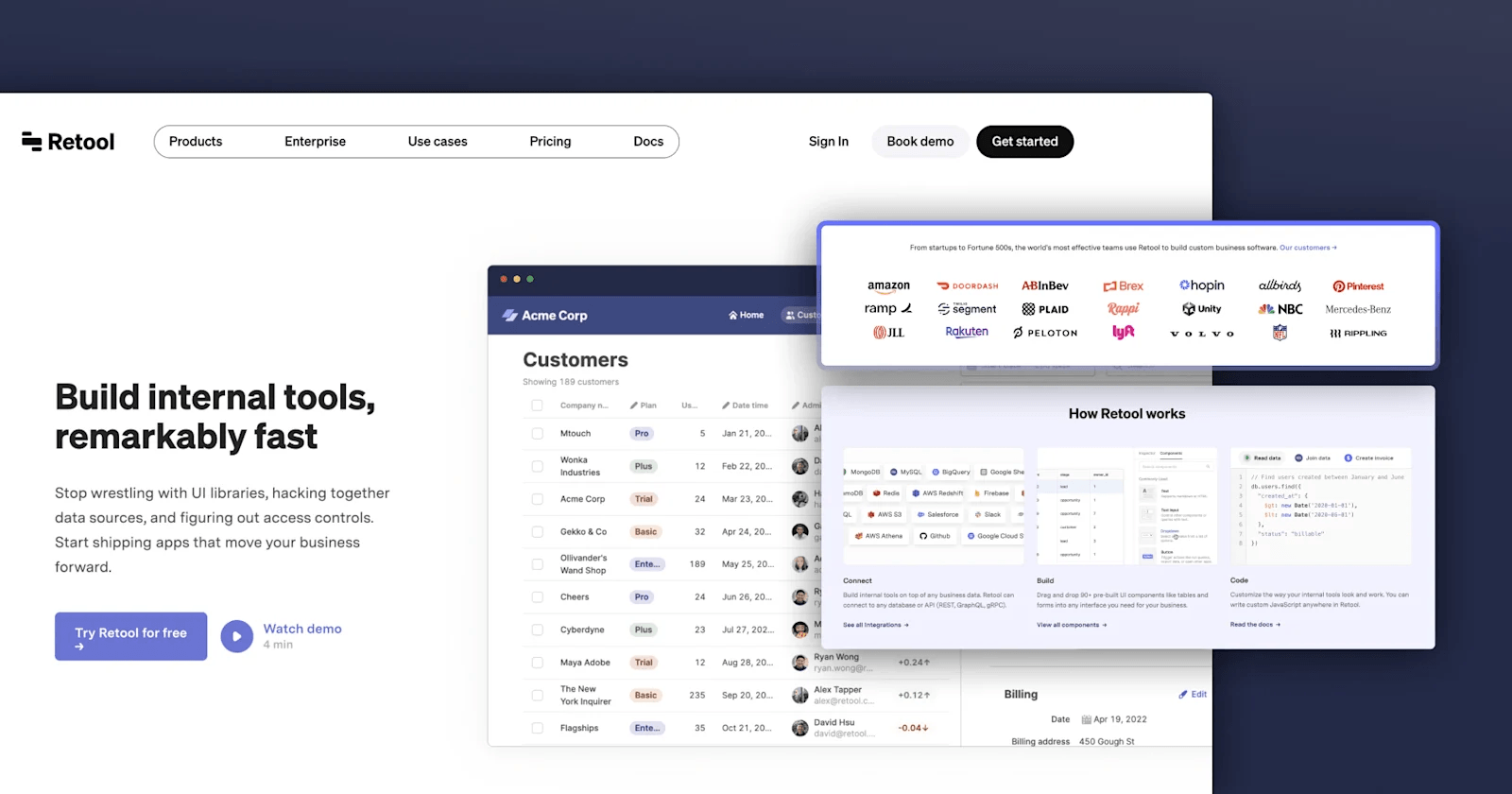 Here’s another standout SaaS demo design example from Retool and their “Try Retool” demo page.