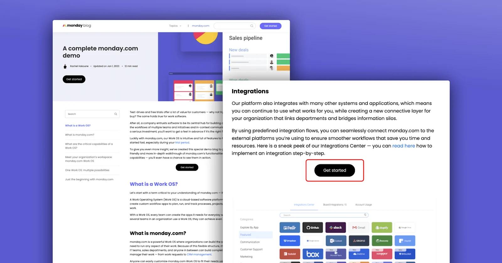 We’re featuring Monday.com for its innovative approach: using its high-traffic blog as a demo format. The blog article title clearly reflects its content, presenting a demo in a blog format—such a unique idea!