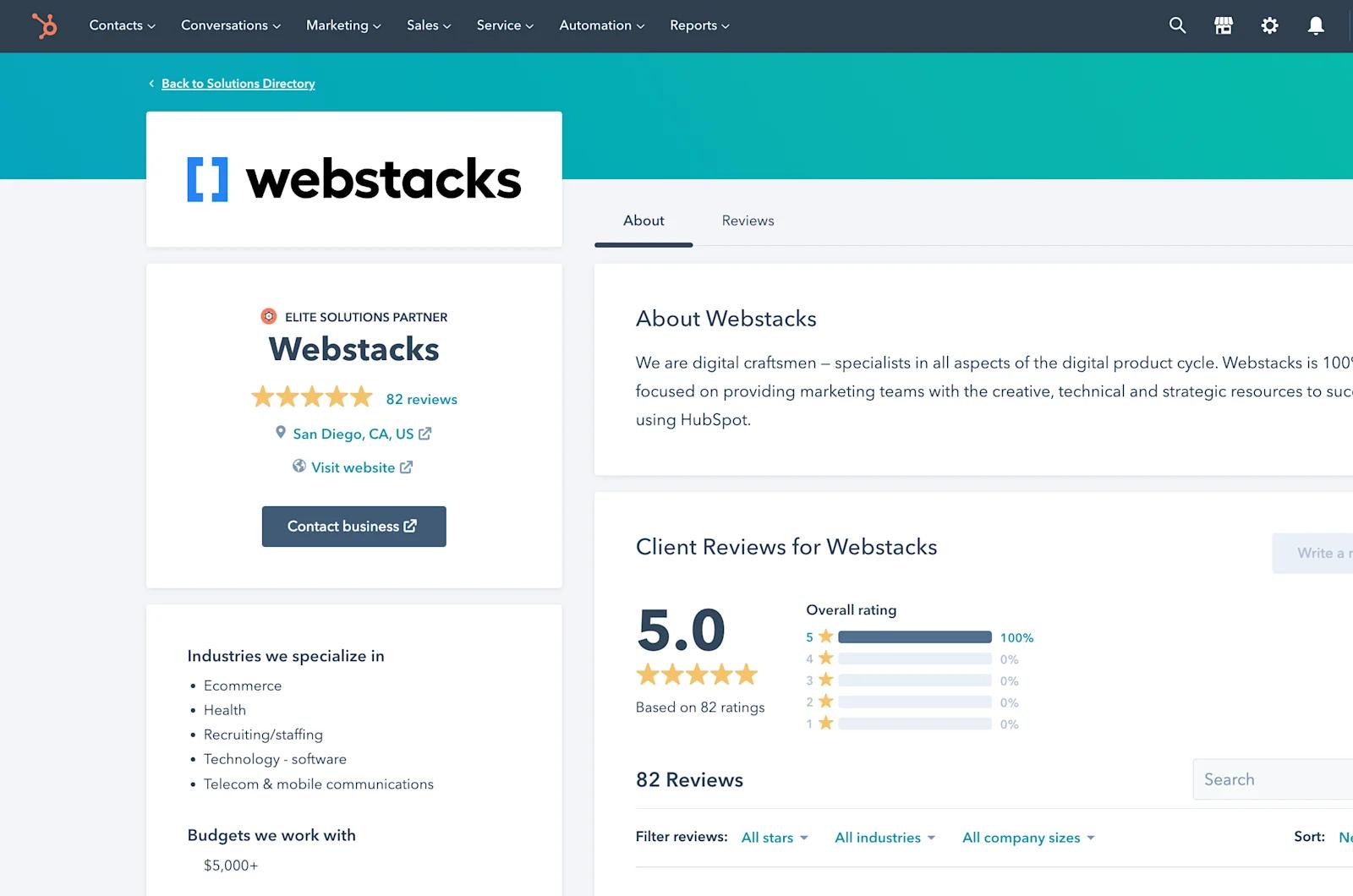 As a result, partners form a global ecosystem of service providers ready to help new customers use HubSpot. This roster of partners includes organizations like Webstacks, Remotish, and Revenue River.