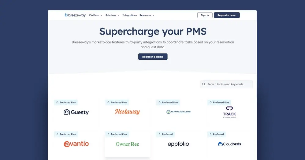 With integrations and PMS (property management system) partnerships so core to Breezeway’s business, we elevated its integrations page design and moved it to the top-level navigation bar.