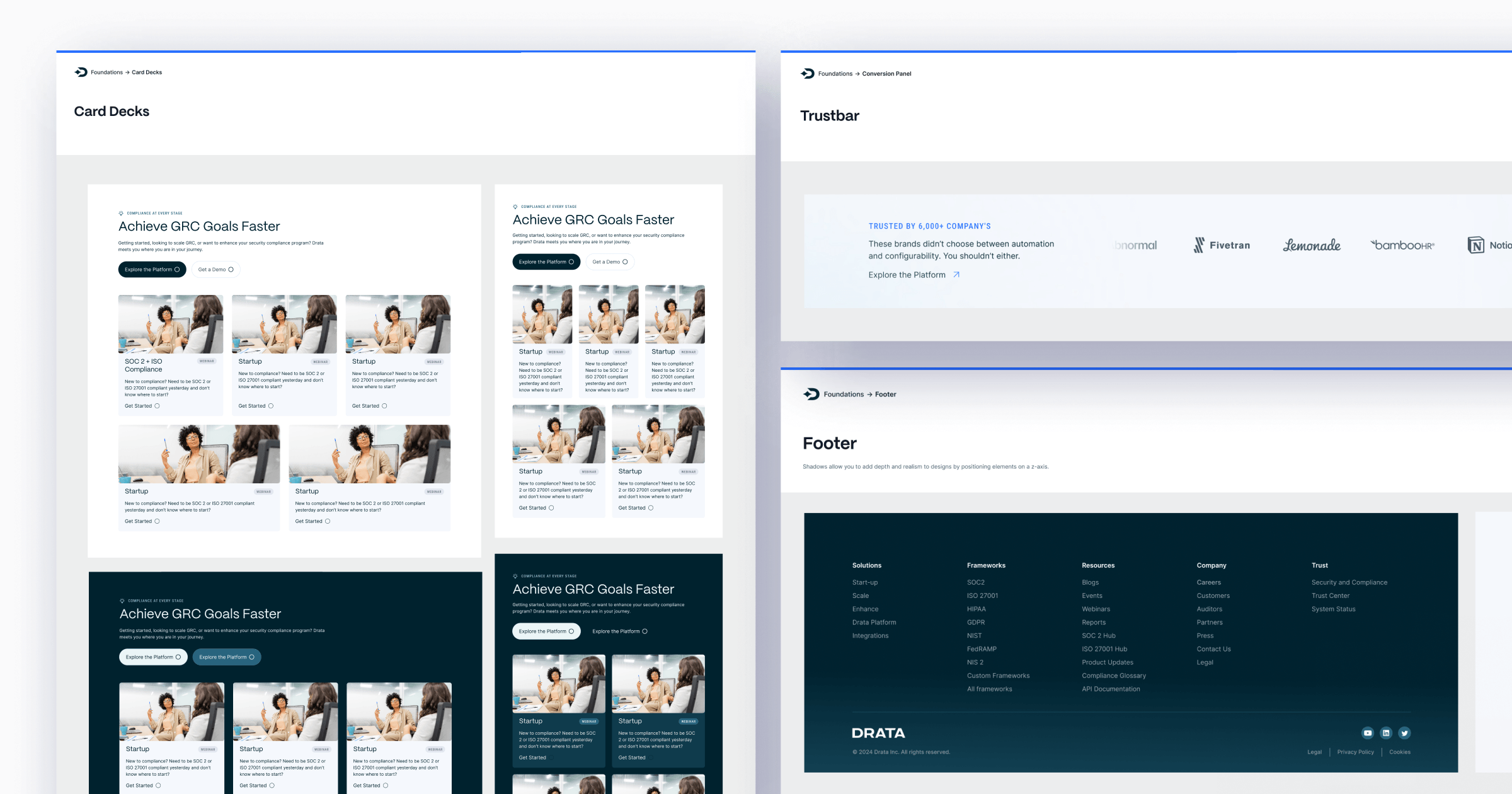 The engagement culminated in two successful launches: V1 in June 2025, aligned with Drata’s brand rollout, and V2 in early August, introducing expanded components and refinements based on live feedback.